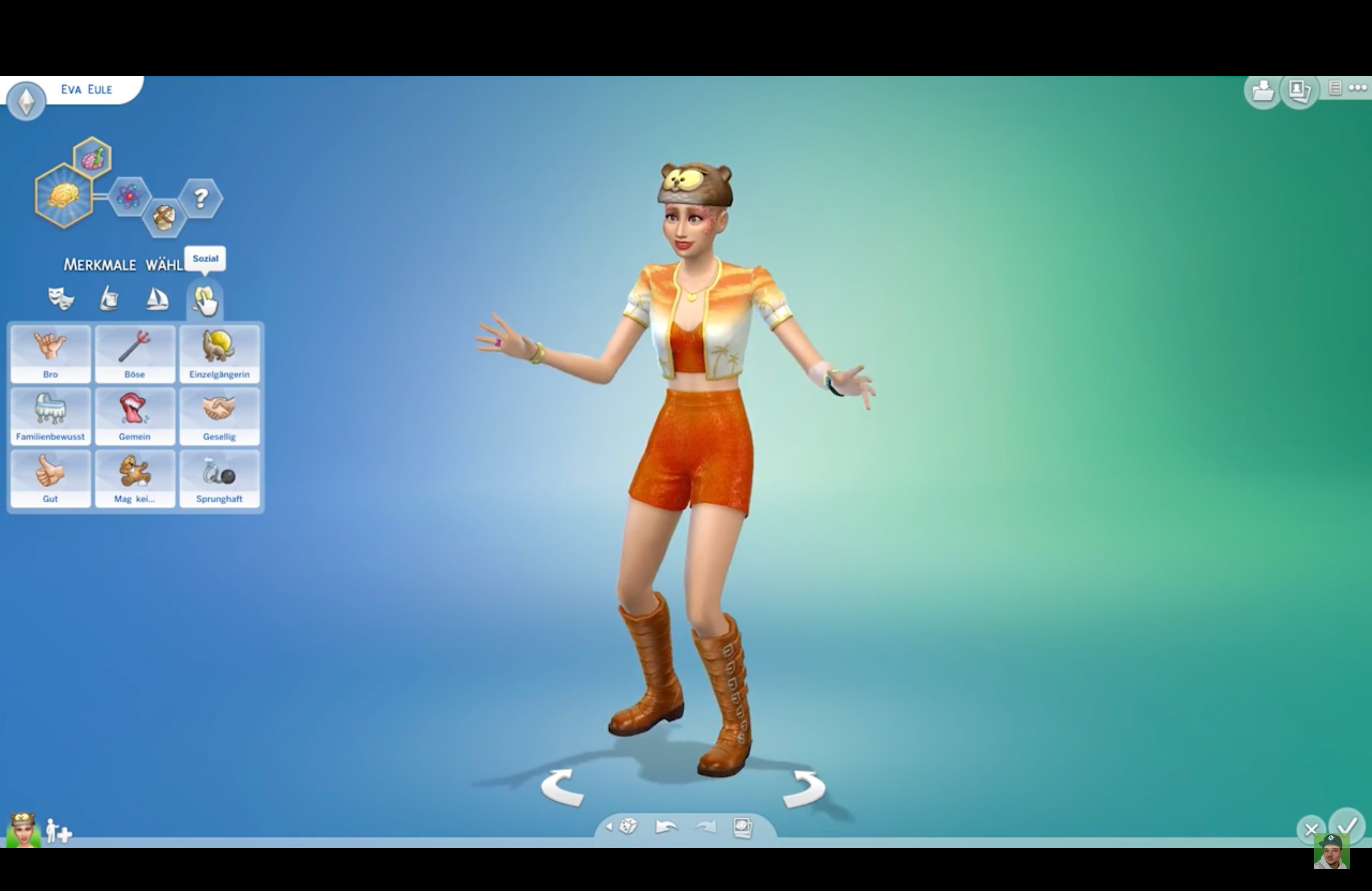 Abb. 2: Kleidung von Eva Eule nach Eintritt in die Wissenschaftskarriere (eigener Screenshot aus SimFan.de: Die Sims 4 Let's Play WISSENSCHAFTLER #1 (An die Arbeit). https://www.youtube.com/watch?v=olG7KbC1bwQ&list=PLIa0vPINxr4D_DodwjsjrTfHioVZKX-2O [00:12:35].